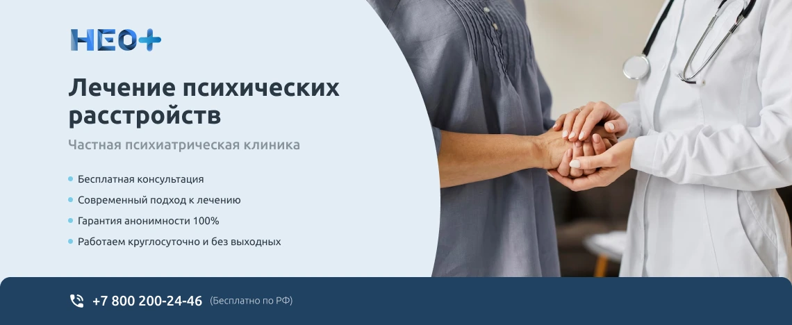 Чтобы ускорить процесс нормализации состояния, обратитесь в клинику «НеоПлюс» в Каменке. У нас работают профессиональные врачи, которые знакомы с особенностями лечения заболевания. Они изучат состояние пациента, проведут диагностику и разработают грамотную схему лечения. Чтобы обратиться в отделение психиатрии и получить квалифицированную помощь, позвоните по телефону ☎️ +7 (800) 200-24-46. Дополнительно можно оставить заявку через форму обратной связи. Наши сотрудники ответят на звонок, после чего подскажут, как воспользоваться услугой.